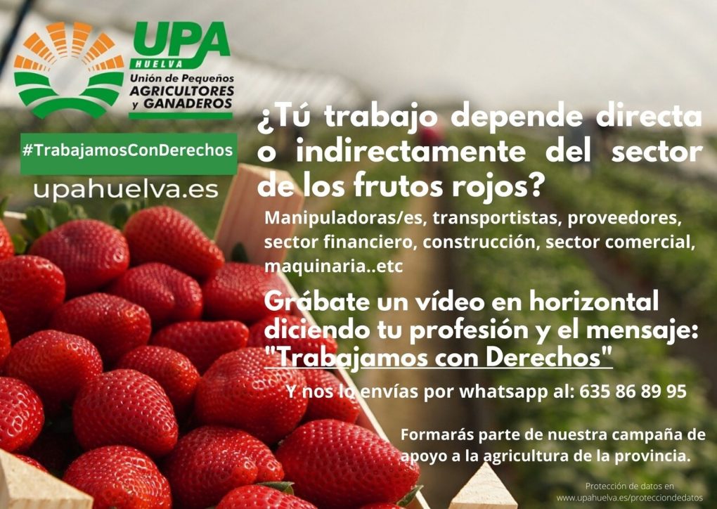Fruto de esta movilización se ha lanzado la campaña #TrabajamosConDerechos, una iniciativa de UPA Huelva con el objetivo de dignificar la función de los agricultores, su honradez como empresarios, y reivindicar la labor diaria de los trabajadores del campo solicitando el apoyo de los  sectores que trabajan directa e indirectamente de los frutos rojos de Huelva.