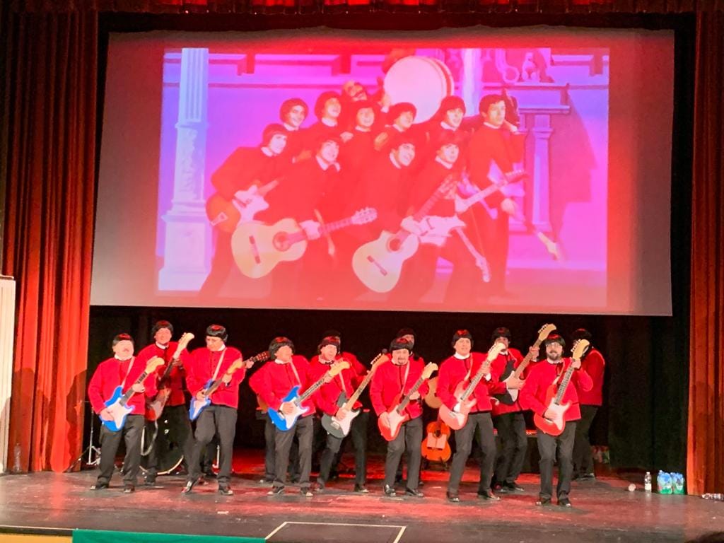 Ante un Teatro Cardenio entregado, actuó una comparsa singular, con numerosos veteranos de las este tipo de agrupaciones creadas por Villegas, que luce el tipo de su agrupación más internacional ‘Los Beatles de Cádiz’, de 1965, que acabó recorriendo el mundo durante ocho años.