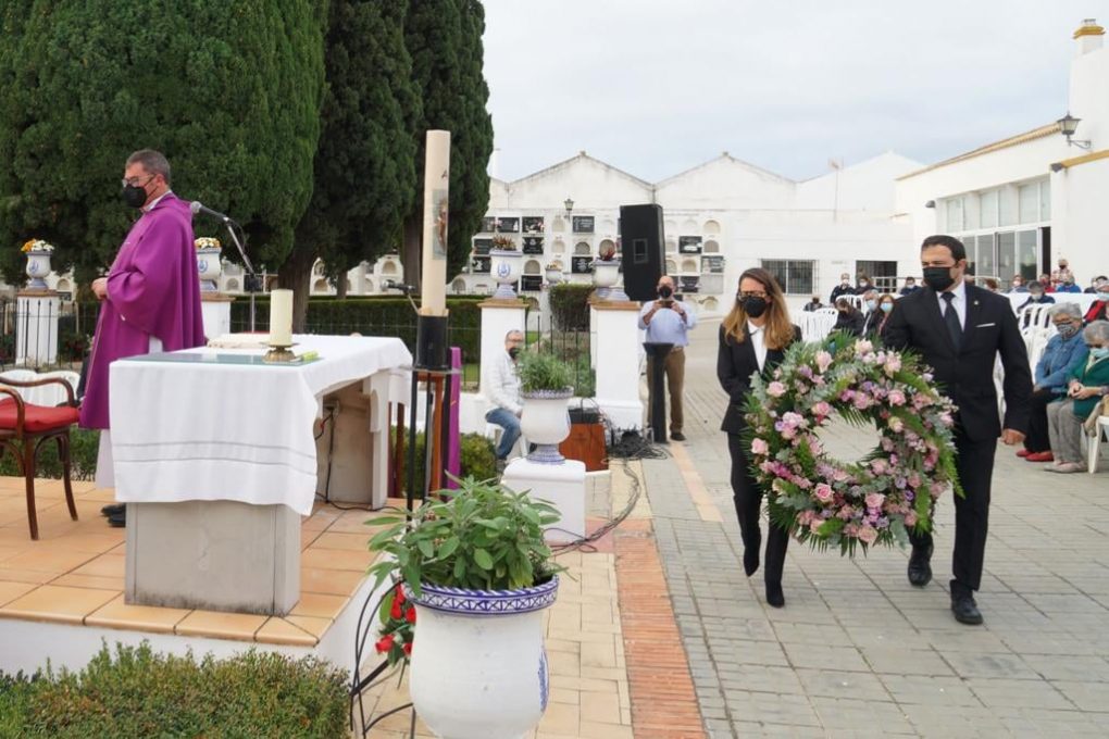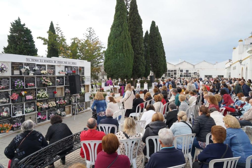 El Cementerio Municipal de Ayamonte ha vuelto a acoger un año más una multitudinaria misa de Difuntos, donde se han dado cita cientos de vecinos tras un año suspendida por la pandemia de coronavirus, teniendo que ser trasladada a la Parroquia de las Angustias.