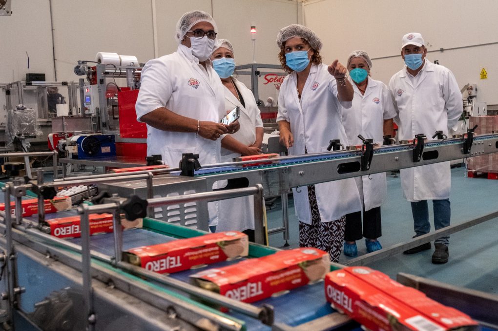 Tras la firma del acuerdo de colaboración, Limón ha visitado las instalaciones de esta empresa puntera en la elaboración de conservas de pescado y salazones, guiada por su Consejero delegado, Juan Vázquez, a los que han acompañado también la portavoz de Pesca en la Comisión de Agricultura, Pesca y Alimentación en el Congreso de los Diputados, María Luisa Faneca; el vicepresidente de Innovación Económica y Social, Juan Antonio García; el diputado provincial y portavoz, Salvador Gómez; las diputadas provinciales Bella Canales y Aurora Águedo, así como la concejala de Pesca del Ayuntamiento de Isla Cristina, Isabel Martínez.