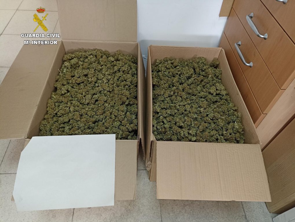 Al ser abierto el maletero de uno de los vehículos, fueron halladas 11 cajas de poliespan, las cuales contenían cogollos de marihuana secos y ya preparados para su venta. También se halló una balanza de precisión en perfecto estado de funcionamiento, procediéndose a la detención de las dos personas.