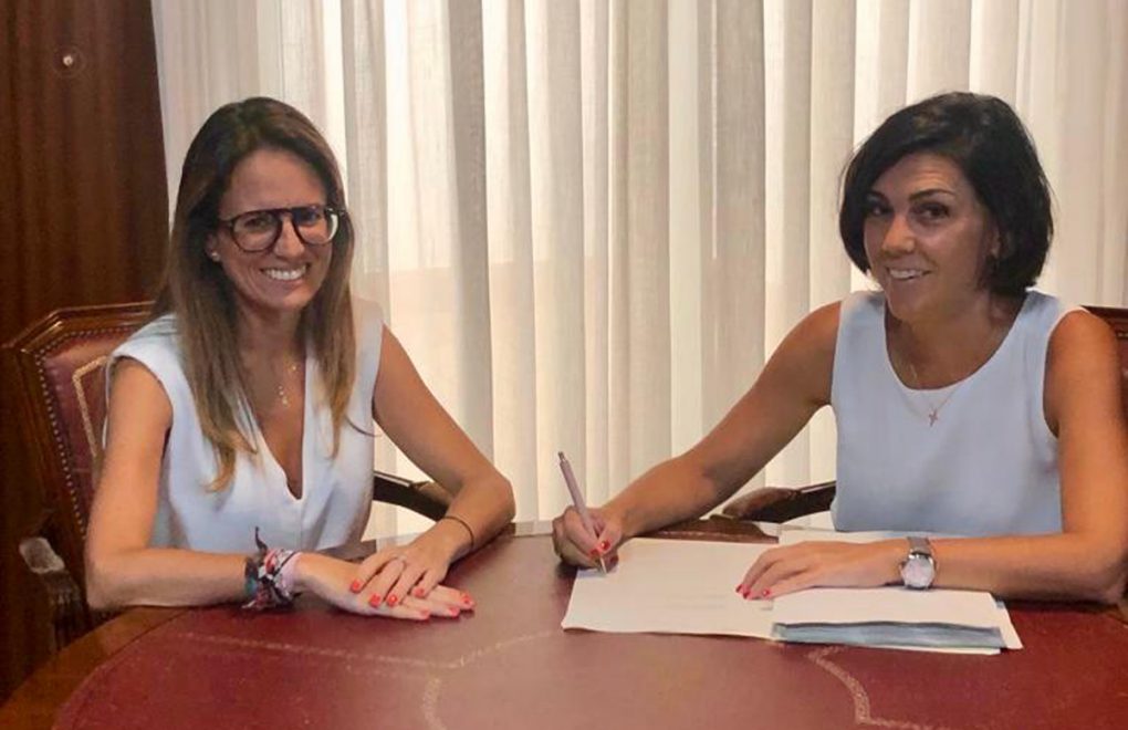 La Alcaldesa de Ayamonte, Natalia Santos, y Ana Linares en representación de la empresa Óbolo Sociedad Cooperativa Andaluza de Interés Social, han rubricado un acuerdo para la prestación del Servicio de Ayuda a Domicilio (SAD), en la localidad.
