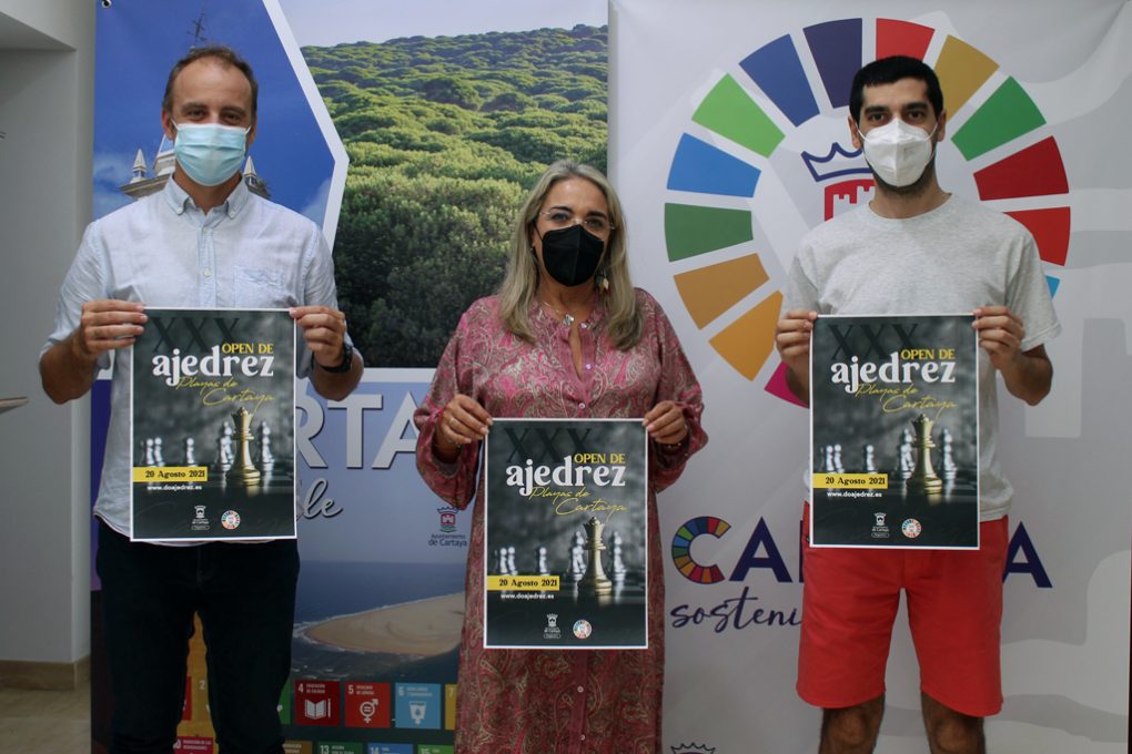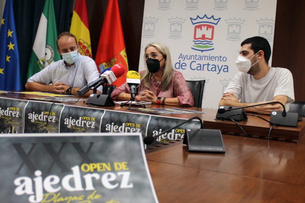 El XXX Open de Ajedrez ‘Playas de Cartaya’ se celebrará el próximo 20 de agosto en la Plaza Redonda de la localidad, organizado por el Área de Deportes del Ayuntamiento. A la presentación han asistido la alcaldesa, Pepa González Bayo, el concejal de Deportes, Israel Medina y el monitor de la Escuela Municipal de Ajedrez, Celestino González.