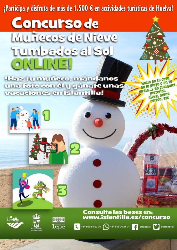 El Área de Turismo de la Mancomunidad de Islantilla ha convocado la sexta edición de su tradicional Concurso de Muñecos de Nieve Tumbados al Sol con una novedad dictada por la pandemia de la Covid-19 y las restricciones de movilidad impuestas por la misma, que han obligado a su organización a reinventarse para adaptarse a las circunstancias, abriendo por primera vez este certamen a participantes de todos los rincones del mundo que deseen concurrir a él dada su celebración virtual.
