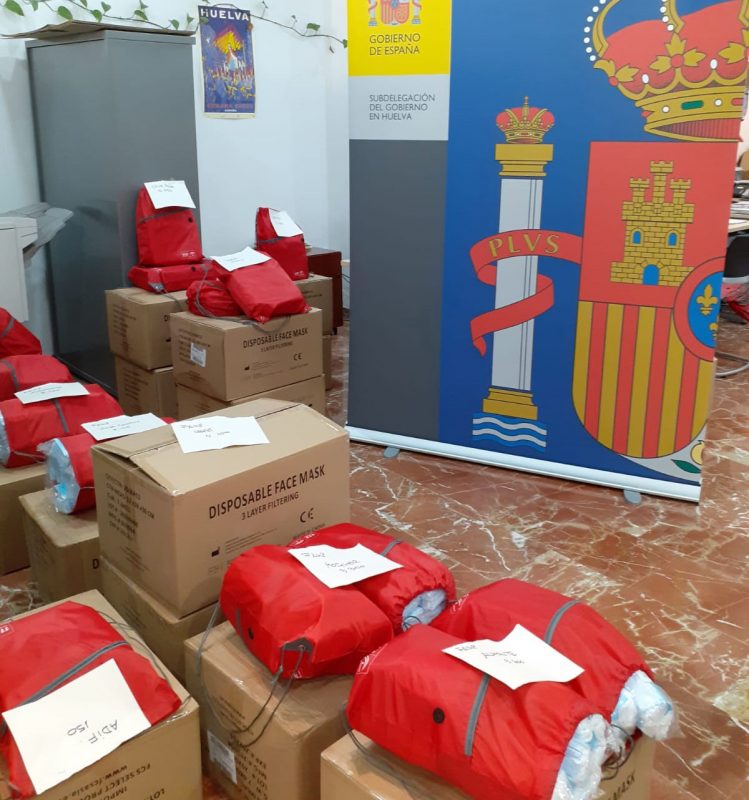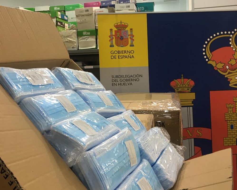 La Subdelegación del Gobierno en Huelva ha recibido durante este fin de semana del Gobierno de España a través del Sistema Nacional de Protección Civil, más de 160.000 mascarillas que se repartirán nuevamente en los principales nodos de transporte público, ayuntamientos y entidades sociales de la provincia.
