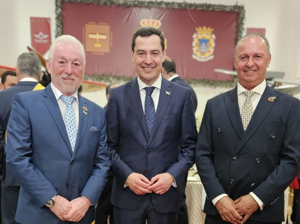 En representación de la CR Palos han asistido su presidente, Dámaso Cerezo, y el secretario gerente, Fernando Sánchez, quienes han tenido la ocasión de mantener un breve encuentro con el presidente de la Junta de Andalucía, Juan Manuel Moreno Bonilla, presente en los actos oficiales del centenario.