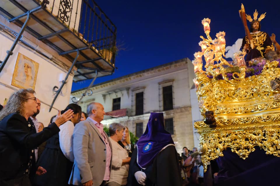 La alcaldesa de la ciudad, Natalia Santos, el párroco Juan Manuel Pérez Núñez, la presidenta de la Agrupación de Cofradías y Hermandades de la localidad, Pilar Carro, presidieron junto al teniente de alcaldesa, Antonio Cazorla y a otras personalidades del mundo cofrade del municipio, el paso de la Hermandad por la tribuna oficial, en el céntrico Paseo de La Ribera, tras el cual comenzaba su regreso al barrio de La Villa, antes de la salida de la Cofradía de Nuestro Padre Jesús Nazareno y María Santísima del Socorro, para dar paso a esa intensa madrugada en la que Ayamonte acompaña a Jesús y María en su caminar por las calles de la localidad costera.