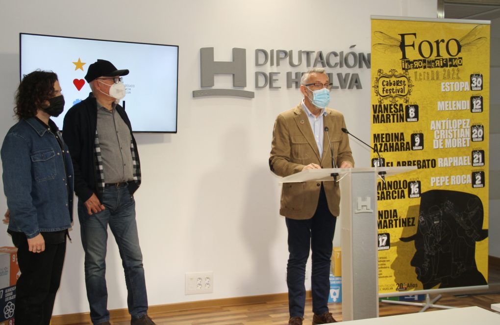 La Diputación de Huelva se ha adelantado al verano para presentar la programación musical del Foro Iberoamericano de la Rábida 2022, “uno de los eventos culturales del periodo estival más esperado y mejor valorado por el público, junto al Festival de Teatro y Danza Castillo de Niebla, en un lugar de referencia del entorno colombino como es este auditorio rabideño”, ha señalado el vicepresidente de Innovación Económica y Social, Juan Antonio García, que ha sido el encargado de la presentación del cartel, junto a dos de los artistas participantes, los onubenses Pepe Roca y Cristian de Moret.
