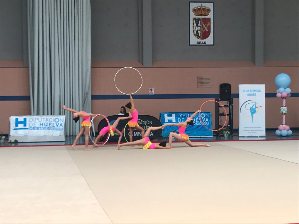 Los encuentros de gimnasia rítmica han reunido a unos 400 menores en las diferentes citas que se han celebrado en diversos puntos de la geografía provincia. En concreto se han desarrollado dos fases previas, en Aljaraque y Moguer, y dos fases finales, en Beas y Ayamonte, con la participación de 32 clubes y escuelas de la provincia.
